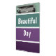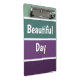 Um padrão horizontal verde e roxo listrado e o texto: Belo Dia. Você pode clicar em personalizar e editar o texto. Escreva duas palavras em uma linha.