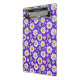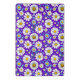 Um padrão contínuo colorido apresentando margaridas com centros amarelos, folhas azuis e um fundo roxo vibrante. Perfeito para temas de primavera, designs de tecidos e artesanatos digitais ou impressos alegres.