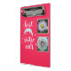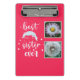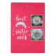 Ilustração cômoda e giratória com cabelo, pestanas, estrelas pequenas e dois modelos fotográficos. Clique em personalizar para alterar as fotos para a da sua irmã (fotos quadradas funcionam melhor) ou comprar-as como estão.