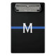 Esta prancheta fina de linha azul da polícia tem uma faixa azul horizontal com um monograma inicial na frente em branco para você personalizar.