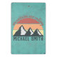 As montanhas de pastéis de safra chamam de design personalizável monograma. Desenho de uma montanha de neve com linhas de cor pastel em amarelo, laranja e vermelho representando o céu do pôr do sol. Acima do círculo céu está um ditado que montanhas estão chamando e debaixo das montanhas há um monograma onde você pode adicionar seu nome. Perfeito para os entusiastas da natureza e caminhada.