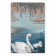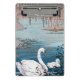 Esta miniprancheta tem uma imagem vintage de uma linda mãe branca nadando num lago azul com seu bebê nadando branco.