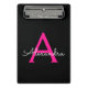 Mini Prancheta Nome do Monograma Girly Black Script Hot-Pink