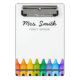 Mantenha-se organizado este ano escolar! Brilhe sua sala de aula com este nome personalizado, MINI, área de transferência especialmente projetada para professores! Apresentando uma alegre fileira de lápis coloridas e personalizável com o nome do seu professor. Um presente pensativo e prático para qualquer educador, estas pranchetas acrescentam um toque pessoal e divertido ao dia a dia. Ideal para professores, funcionarios escolares e organização em sala de aula.