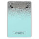 Mini Prancheta Nome Monograma Glitter Azul Água Turquesa Prateado