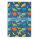 Teste padrão colorido da silhueta do dinossauro que você pode personalizar e adiciona seu próprio nome. Tiranossauro Rex, titanosaurs, Triceratop, raptores, Ankylosaurs, Dino-Pássaros, Stegosaurus, Apatosaurus, Pteranodon e mais em um teste padrão colorido no fundo azul, e dinossauros em verde, em azul, em amarelo e laranja.