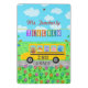 Este design bonito é perfeito para todo o professor pré-escolar ou elementar. É uma ideia do presente do divertimento mostrar no início a apreciação ou o fim do ano, ou em qualquer altura que do ano para um professor que você ama. O design mostra um grupo dos animais peluches que montam o auto escolar. O urso está conduzindo, a raposa é escrevendo em seu caderno, a coruja está olhando fixamente para fora a janela, o porco está sendo um estudante bem-comportado, e o coelho de coelho está acenando uma bandeira no banco traseiro. Em torno do ônibus, é um dia feliz. Use os modelos fáceis para adicionar seu texto. Você pode igualmente "personalizar" para fazer mais ajustes. Comemore seu professor com este design adorável.