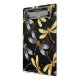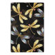 Padrão sem costura com ouro, joias, libélulas brilhantes com asas brilhantes e detalhadas sobre fundo preto. Dourada libélula.