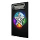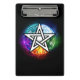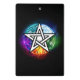 Pentagrama luminoso desenhado artificialmente com cinco elementos mágicos, água, terra, fogo, astral, ar sobre fundo negro. Pentagrama Wiccan. Wicca