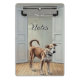 Um cãozinho bonito na porta esperando sua melhor amiga. Obrigado pelo seu interesse! Este design é transferível para que, se você preferir o design em outro produto, você possa transferir o design para um produto de sua escolha. Se tiver alguma pergunta, por favor, não hesite em enviar-nos uma mensagem! - P & L