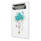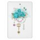 Chave de ouro antiga com rosas de turquesa de tendência, decoradas com folhas de ouro branco e miçangas cor-de-rosa e azuis. Cor agradável. Rosas de turquesa. Ouro branco. Tifania azul.