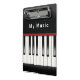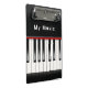 as teclas pretas e brancas do piano com as formas vermelhas Texto pode ser editado ou excluído.