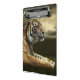 Mini Prancheta Tigre que olha e que senta-se sob o céu dramático