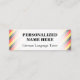 Este design profissional e simples de cartão de visita pode ser usado por um profissional de idiomas como um professor de língua alemã, um instrutor de língua alemã ou um tradutor de língua alemã. O nome, a profissão e as informações de contato podem ser personalizados.