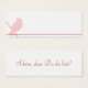 Estes Kärtchen pequenos vocacionam-se como aderentes a presentes de convidado ou como Tischkarten para o tabuleiro de boda. Sítio para o nome do convidado no dorso é no anverso ao lado do pássaro, esta “Bonito, que aí és!”. Podem abändern este texto claro também depois de Seus desejos. O pássaro é rosa, a linha e a escritura vermelha. “a birdie” série de boda productos mais distantes de encontram-vos em minha Zazzle Shop http://zazzle.de/PulsCreations.