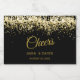 A combinação na moda do fundo preto da etiqueta com a imagem de uma dispersão brilhante de Ouros de fogos de artifício enche o design com alegria. O texto dourado escuro do texto manuscrito adiciona harmoniosamente elegância ao design. Clássicos modernos para decorar seu casamento inesquecível.