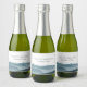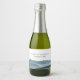 Mini rótulo de garrafa de vinho espumante personalizado com cena de montanha. As serras azuis são a imagem que se encontra na parte inferior das etiquetas. Uma linha de solteiro de texto pode ser adicionada para casamentos ou outros eventos. O design de rótulo não funcionará em todos os outros tipos de frasco, mas pode parecer ótimo em alguns.