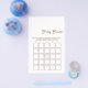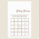 Celebrate the mom-to-be with this elegant Baby Shower Bingo game! This charming flyer features a delicate brown script font for the "Baby Bingo" title, set against a clean white background. The game instructions are clearly printed, inviting guests to guess the gifts the mommy-to-be will receive. The bingo grid is outlined in a sophisticated brown, with a sweet heart at the center, creating a lovely focal point. This design is perfect for a classic and timeless baby shower theme, adding a touch of grace to your celebration. Guests will have a blast playing this interactive game, making your baby shower memorable and fun for everyone.