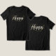 A sleek and elegant "Happy" design featuring ivory lettering accented by thin, sophisticated gold swirls and dots. This minimalist yet classy artwork is perfect for a refined and timeless aesthetic