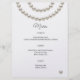 Add a touch of sophistication to your wedding reception with this elegant pearl-themed menu card. Featuring a minimalist design with delicate pearl accents, this menu card beautifully showcases your carefully curated wedding meal. From starters to desserts, let your guests anticipate each delicious course with this stylish and refined menu. Perfect for any wedding theme that exudes elegance and grace.