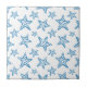 Clean starfish pattern ceramic tile with dotted details in soft blue on a crisp white background. Minimalist, airy, and modern coastal aesthetic with a calm, structured flow. Ideal for beach lovers, ocean enthusiasts, and nautical style fans.