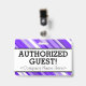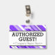Este simples design de crachá apresenta a mensagem "GUEST! AUTORIZADO!" e um nome de empresa personalizável ou outra mensagem personalizada. Um crachá como este poderia ser usado para identificar que alguém em um local de trabalho ou empresa é um convidado/visitante autorizado. [~Z0000307]
