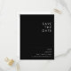 Este cartão-postal moderno minimalista | preto para salvar a data é perfeito para o seu casamento boho sofisticado. Seu design abstrato simples e único acompanhado por uma escrita minimal contemporânea e uma paleta de cores preto e branco dá a este produto um sentimento de luxo formal elegante, mantendo-se simples e chique boêmio. Mantenha-o como está ou escolha personalizá-lo com arte ou gráficos de sua escolha. Você também pode olhar para outros produtos dentro desta coleção para unir todo o seu casamento!