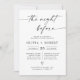 Minimalista Na Noite Antes Do Convite. Este na moda e elegante Convite para Casamento apresenta um magnífico Minimalista pintado à mão. Encontre itens correspondentes na Coleção de Caligrafia Minimalista e Elegante.