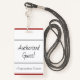 As características deste design simples do crachá a mensagem "autorizaram o convidado! ", e um nome da empresa customizável ou a outra mensagem feita sob encomenda. Um crachá como este poderia ser usado para identificar que alguém em um local de trabalho ou em um negócio é um convidado/visitante autorizados. [~Z0000307]