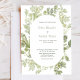 Traga um toque da natureza para o seu casamento com este convite chic mostrando folhagem verde de aquarela e galhos graciosos. Um design moderno que é perfeito para o jardim, o exterior ou as celebrações de temas rústicos