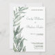 Convide seus hóspedes com estilo e simplicidade através deste convite de casamento adornado com folhas e galhos de aquarelas verdes. Um design eterno que complementa temas modernos e clássicos de casamento