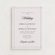 Convite de casamento elegante com um fundo de marfim macio, uma borda sutil e fina e uma caligrafia refinada. O design limpo equilibra o minimalismo moderno com a sofisticação do eterno, fazer-o perfeito para casamentos clássicos, contemporâneos ou formais. Uma escolha versátil que combina perfeitamente com RSVP coordenado, menu e obrigado suas peças.