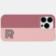 Belo e elegante design de capa de telefone personalizado mínimo com dois blocos coloridos (rosa-ouro/branco-rosa, rosa Dusky/rosa turca) em matizes pálidas rosa-ouro pastel e monograma personalizado ou nome em caracteres sofisticados retro-tipográficos. A estética das riscas bonitas com texto grande em negrito de cinza. Personalize a fonte e a cor do texto com a ferramenta do editor, até mova-a e redimensione-a se o seu nome não for ajustado. Para todos os modelos de iPhone da Apple e alguns smartphones da Samsung Galaxy. Perfeito para as mulheres na moda de moda feminina.