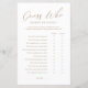 Entretenha seus chás de fraldas convidados com este jogo 'Adivinhem Quem?', com um design minimalista com elegante caligrafia dourada.