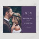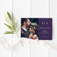 Este elegante e moderno obrigado de casamento que vocês fazem cartões de orçamento apresentam um simples design de texto roxo e branco colorido que exumenta o estilo minimalista, com duas das suas fotos pessoais favoritas de casamento. Adicione suas iniciais ou monograma para torná-las completamente suas.