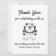 Obrigado aos seus convidados com este carinhoso e personalizável sinal de favor que apresenta um casal "recem casados" caprichoso a afastar-se num carro vintage. Perfeito para mostrar a sua mesa a seu favor, este sinal adiciona um toque pessoal a qualquer casamento, permitindo que você inclua os nomes da noiva e do noivo e a data especial. A ilustração a preto-e-branco traz uma sensação eterno, chic, que se emparelha lindamente com pequenos tratamentos para os hóspedes levarem para casa. O texto brincalhão "Pegue algo doce para a estrada" adiciona um tom leve, ideal para casais que querem manter as coisas divertidas e memoráveis. Com seus detalhes personalizados e estilo elegante, esse sinal é perfeito para casamentos vintages, modernos ou caprichosos.