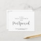 Este é o design moderno minimalista simples e limpo temático, em fonte preta, cartão postal de reprogramação de festa de casamento (adiado / adiamento) (adiado). É a maneira perfeita e elegante de fazer o anúncio de reprogramação para amigos e familiares.