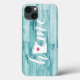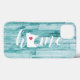 Mostre algum orgulho do estado de casa com esta fofa capa de telefone de madeira russa turquesa falsa com "casa" em letras brancas de escrita de caligrafia com um mapa da silhueta do estado de Minnesota em pé para a letra "O". Um dentro de ilustração do coração cor-de-rosa no mapa do estado completa o design; você pode mudar a posição do coração para sua cidade natal abrindo a ferramenta design e arrastando a forma do coração para seu lugar favorito!