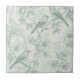 A charming mint green toile pattern ceramic tile featuring graceful birds perched among delicate flowers and ornate scrollwork. This seamless design blends classic French country elegance with natural beauty, rendered in soft green tones on a warm cream background. The intricate floral clusters, leaves, and decorative motifs evoke a sense of vintage refinement and pastoral serenity. Its timeless aesthetic makes it perfect for adding a touch of sophistication and calm to any setting.