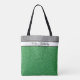 Esta bolsa de tote é mostrada com uma impressão brilhante Kelly Green. Tem uma banda falsa de brilho prata no topo com seu título, nome ou frase favorita personalizado. Tamanho médio mostrado. Tem pulseiras negras. Personalize este item ou comprar conforme projetado.
