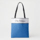 Esta bolsa de tote é mostrada com um impressão de brilho azul real divertido. Tem uma banda branca no topo com seu título personalizado, nome ou frase favorita. Tamanho médio mostrado. Tem pulseiras negras. Personalize este item ou comprar conforme projetado.