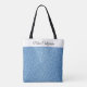 Esta bolsa de tote é mostrada com um impressão azul brilhante divertido. Tem uma banda branca no topo com seu título ou nome personalizado nela. Design duplo. Tamanho médio mostrado. Tem pulseiras negras. Personalize este item ou comprar como está.