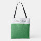 Esta bolsa de tote é mostrada com um impressão verde brilhante divertido. Tem uma banda branca no topo com seu título personalizado, nome ou frase favorita. Tamanho médio mostrado. Tem pulseiras negras. Personalize este item ou comprar conforme projetado.