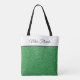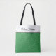 Esta bolsa de tote é mostrada com um impressão verde brilhante divertido. Tem uma banda branca no topo com seu título personalizado, nome ou frase favorita. Tamanho médio mostrado. Tem pulseiras negras. Personalize este item ou comprar conforme projetado.