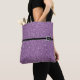 Este saco de totas é mostrado com um impressão de brilho roxo divertido e uma faixa preta entre o topo e o fundo com uma pequena coroa de tiara prateada como se fosse uma fivela na estripa. Tamanho médio mostrado. Tem pulseiras negras. Personalize este item ou comprar conforme projetado.