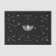 Este papel tecidular é mostrado com um impressão de estrelas comemorativo, pequenos desejos de texto de boa sorte, você está pegando fogo, você é o maior, etc. espalhado em Cinzas Suaves e Taupe em um fundo preto com parabéns de cinza prateada e impressão de coroa brilhando prata. Personalize este item ou comprar conforme projetado.