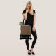 Este na moda grande saco de totes bonitinho é mostrado em uma cor Brownie e no estilo de bloco de cores pretas com uma coroa de paginação e texto personalizado. Personalize este item e altere o texto para o seu.