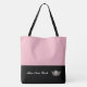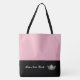 Este saco de totes na moda grande giro é mostrado em um estilo de bloco de cores rosa e preto com uma coroa de pager e texto personalizado.