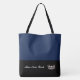 Este na moda grande saco de totes bonitinho é mostrado no estilo de bloco de cores inferior Marinho e preto com uma coroa de paginantes e texto personalizado. Personalize este item e altere o texto para o seu.