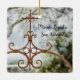 Ornamento de cerâmica de 2 lados, único, que inclui a Torre de Bell da Missão Espada com uma cruz e uma cruz simbólica de ferro em forma de cruz. Alterar a data do ano para a data atual.
